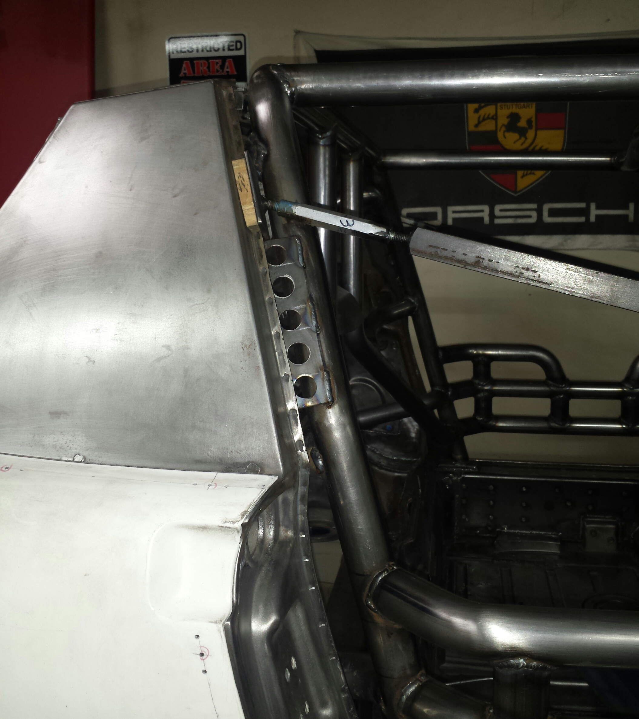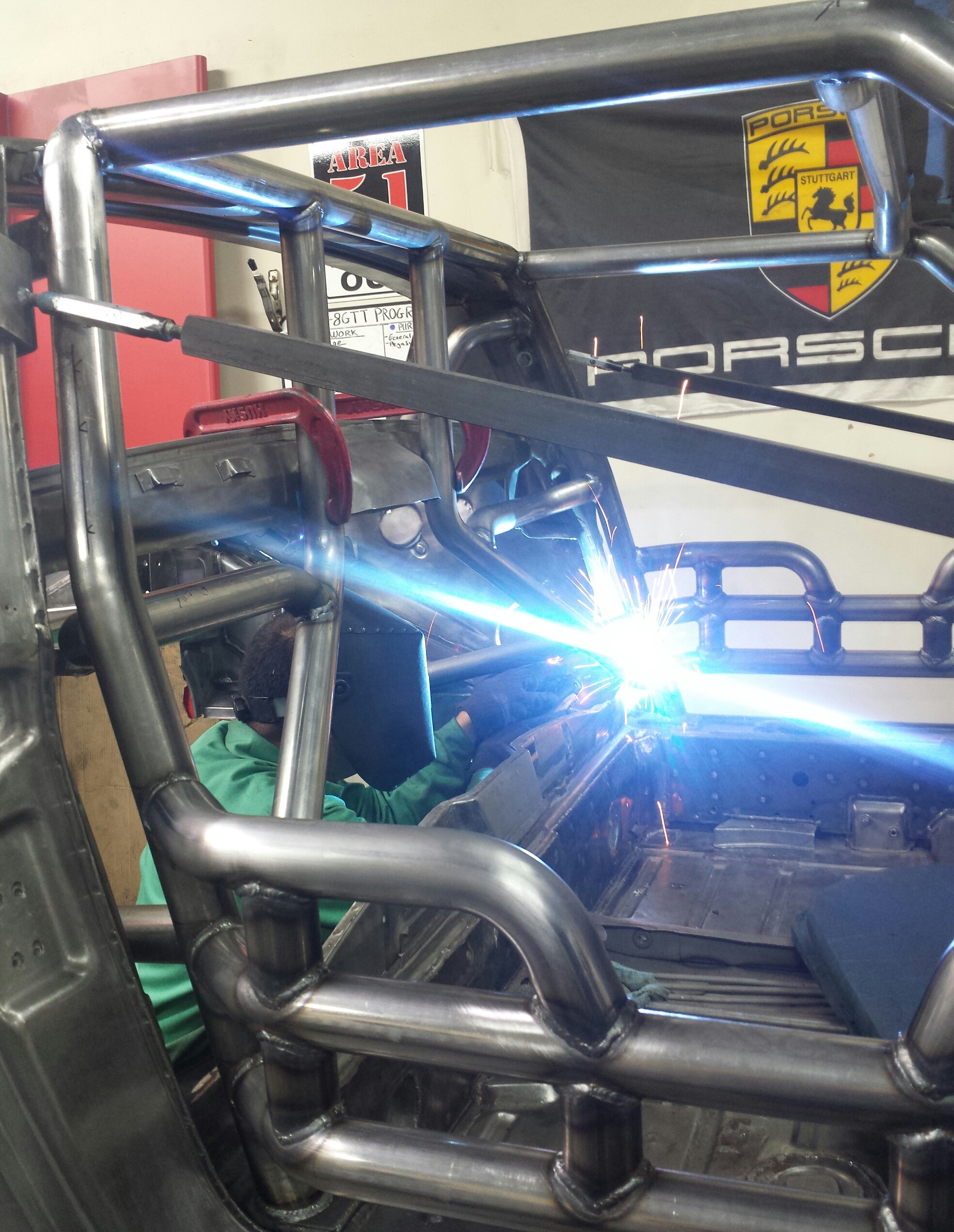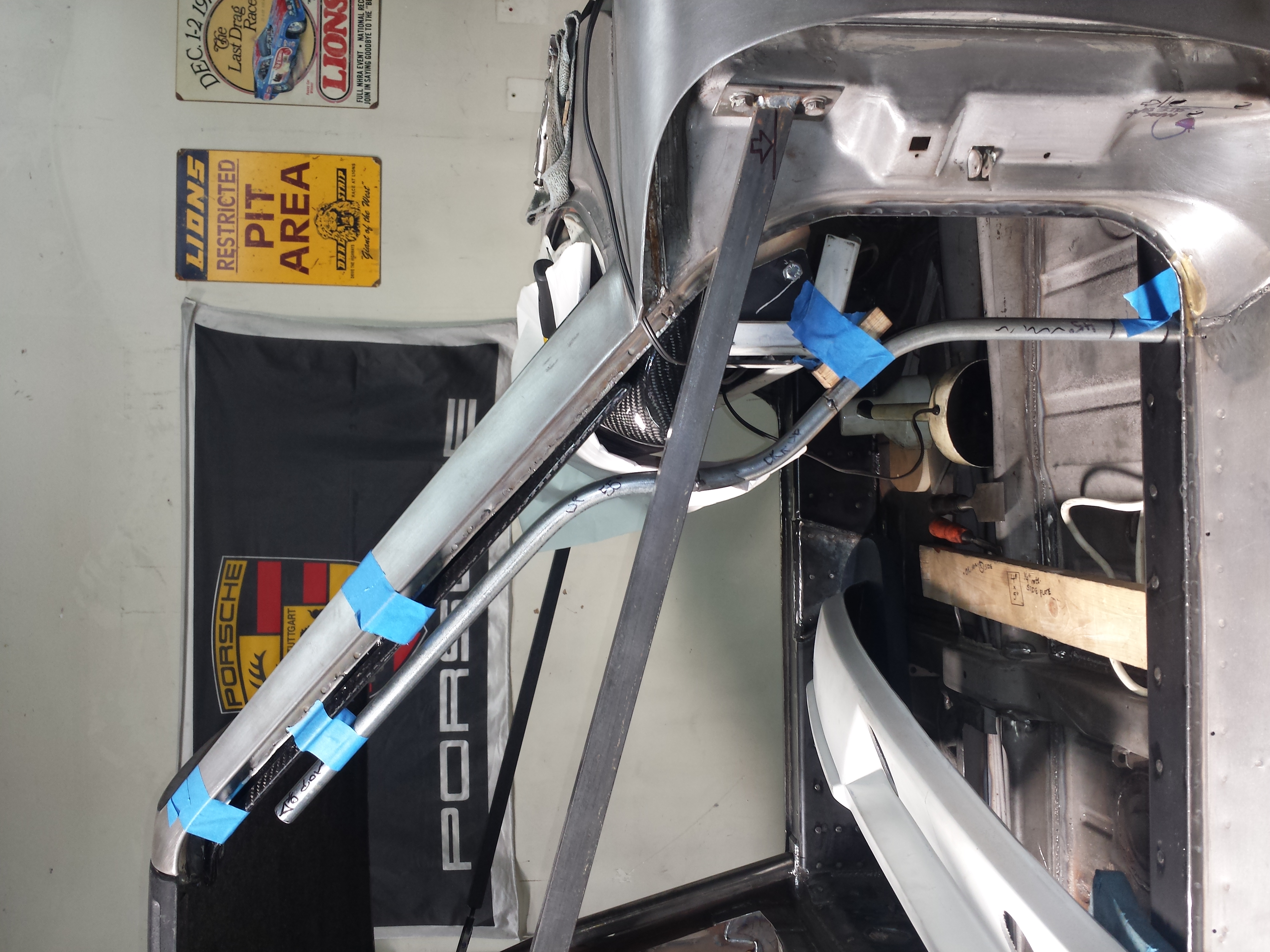 After leaving Texas, it was time to get back to work. Here we cut out some of the metal in the body to feed the radiator lines through the front into the inner longs and out the rear into the engine compartment.