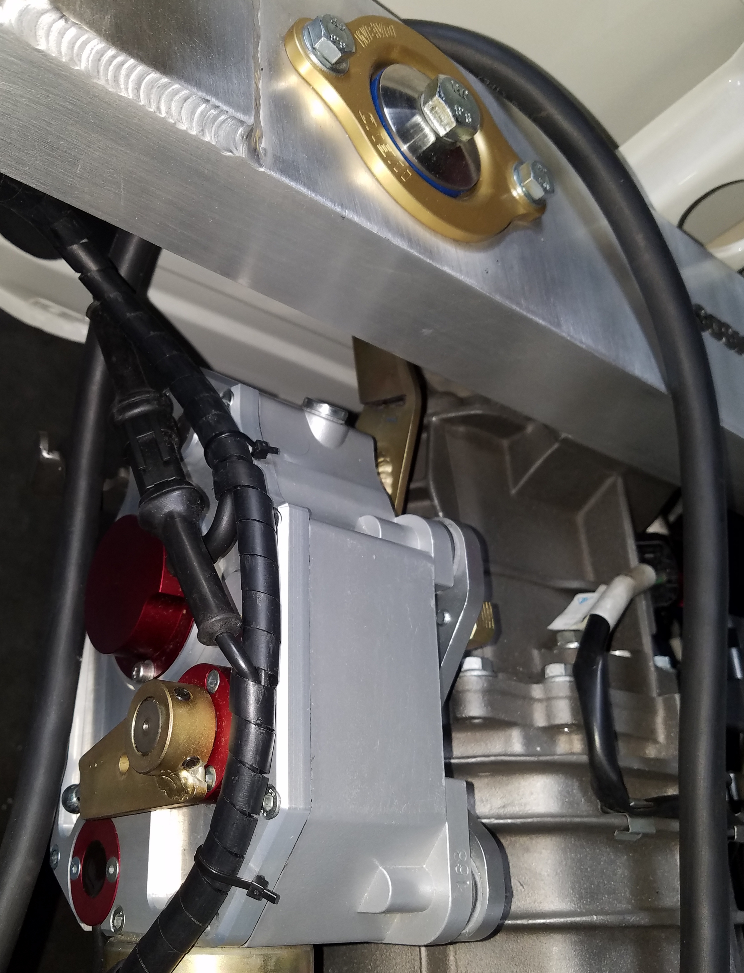 Below is the upper transaxle mount, which also supports the forthcoming wing upright mounts.