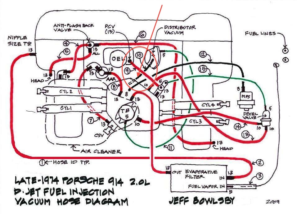 It comes off the plenum as shown on Jeff Bowlsby's "late-1974 2.0 diagram Circled and arrowed in red. I have the retard hose connected as shown.