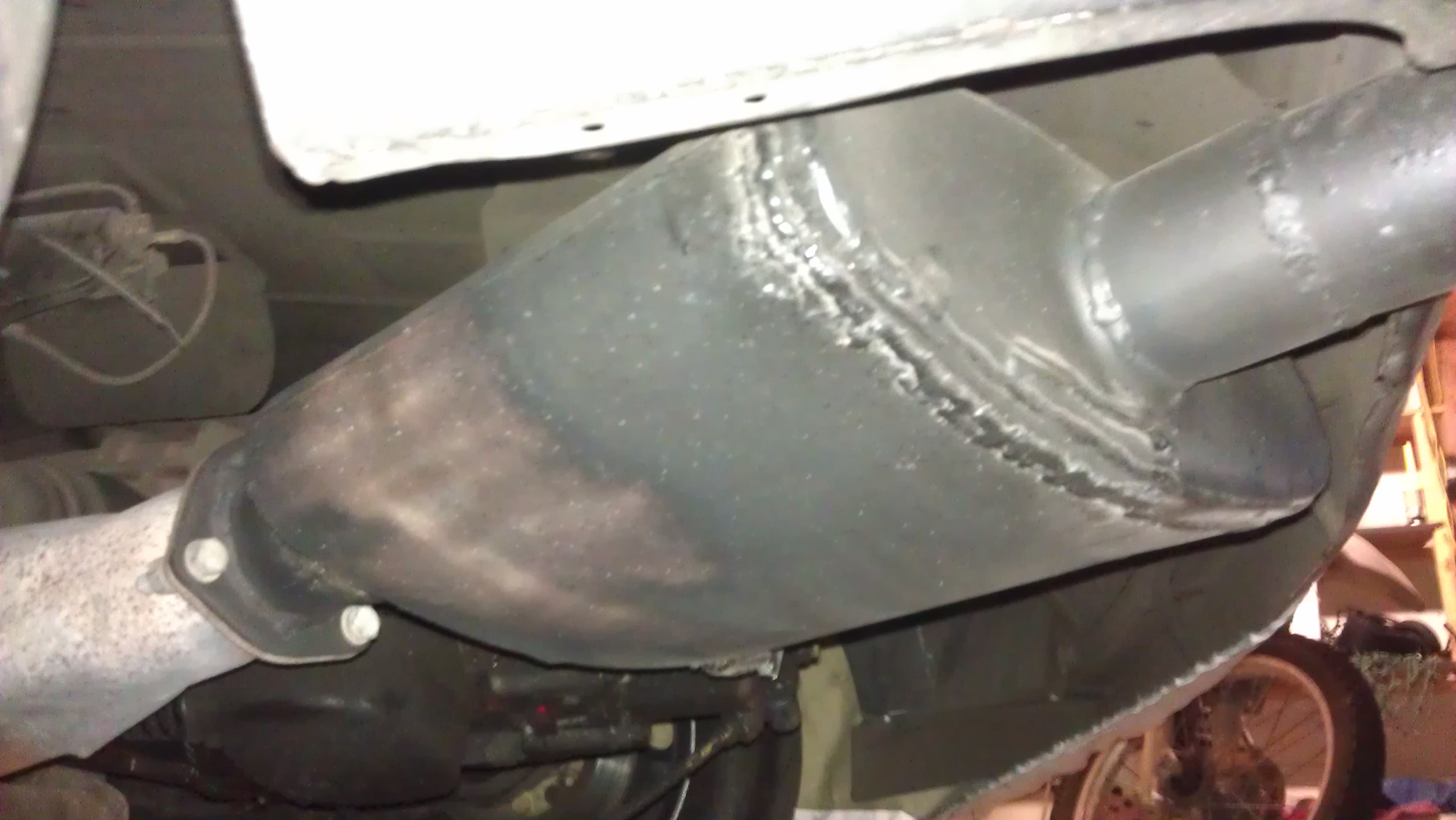 Here are the shots, I will have to dig for the part # of this Magna Flow. You see it fits great. WAYYY better than the Super Trap/Phase 9 Silencer that was there before. Tolle Fab in Sac is the place. Mike is a PRO Race Car builder/Fabricator. Its the real deal.