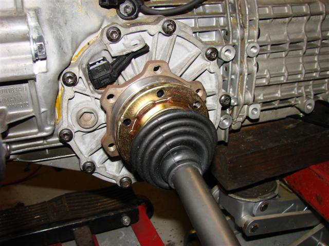 I can here my 944 CV's clicking due to the extreem angle. The Boxster/Audi transaxle flanges sit forward of the trailing arm position. I think I need to swap to a 930 CV but they won't fit in the trailing arm.