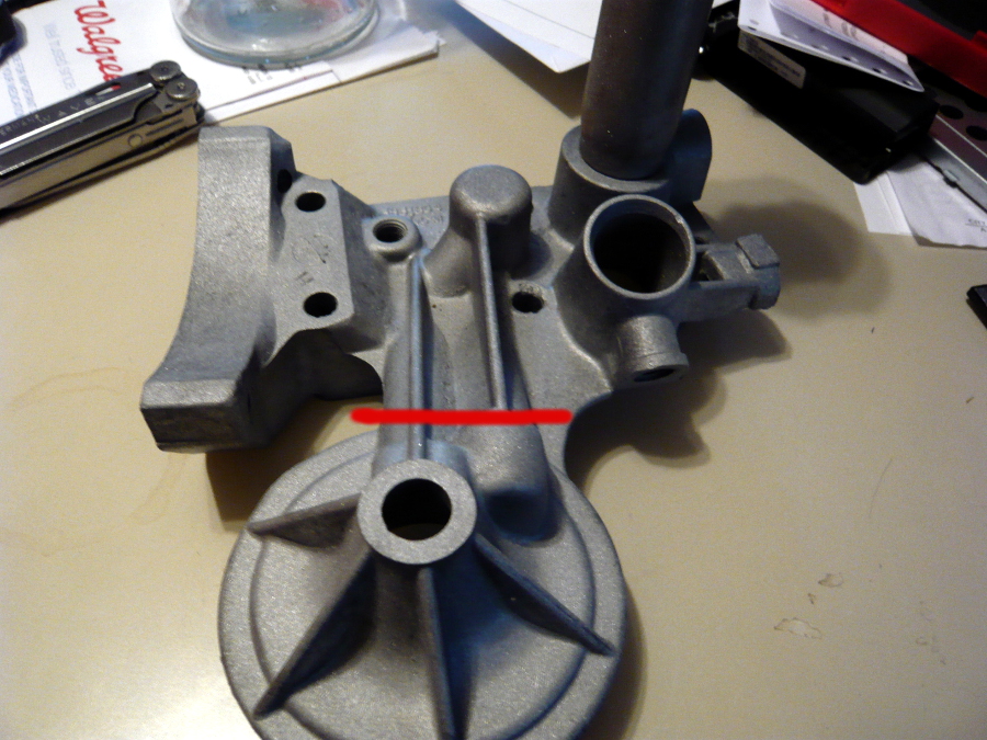 Click to view attachment Click to view attachmentNote that big hole houses one of two oil pressure relief valves. I have a worry that perhaps you might be missing one if the PO just drilled this out and welded on a fitting. It does have the advantage of clearing the firewall with ease and I like that they point straight up. I also like that the PO took the time to install an oil pressure sender, so he must have been cognizant of the oil pressure issue at some unmeasured depth of his psyche.