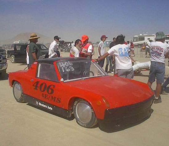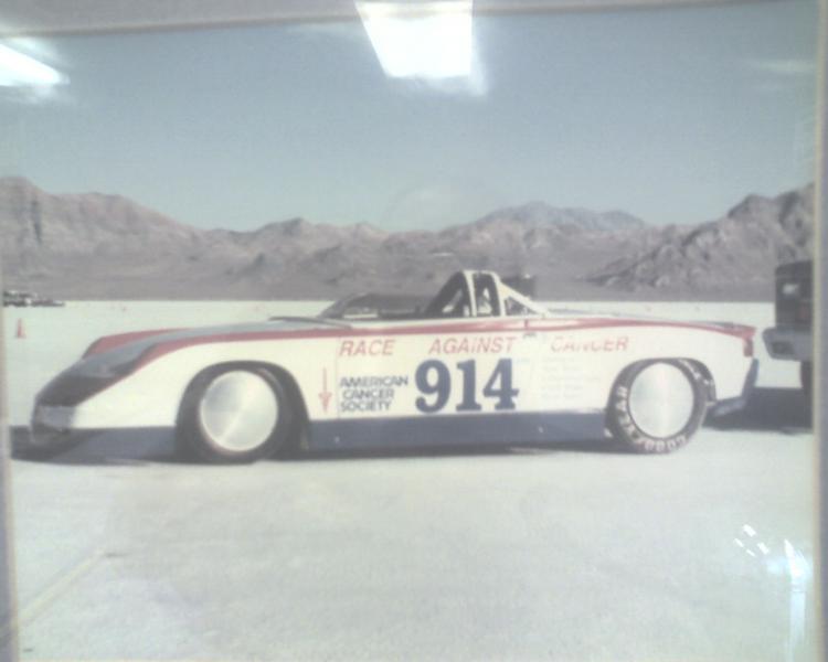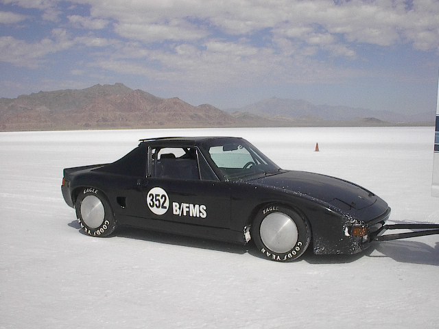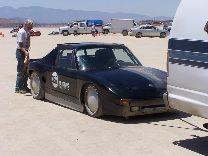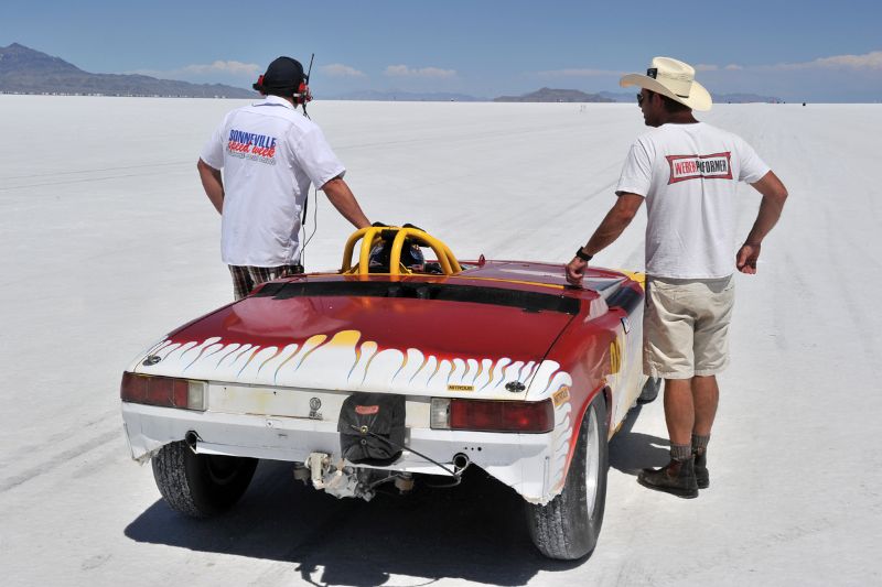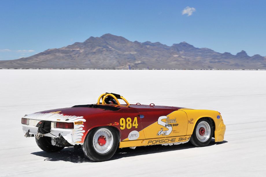 Description says: "Porsche 914’s of any kind are not often seen at Bonneville. This is Lloyd Silacci’s Porsche racer seen at the SCTA-BNI Speed Week in August of 2011. This car featured 4 turbos, that's right – one turbo for each cylinder. Mr. Silacci (age 90) is a veteran racer, he has been racing for quite sometime. Lloyd knows a thing or two about going fast."