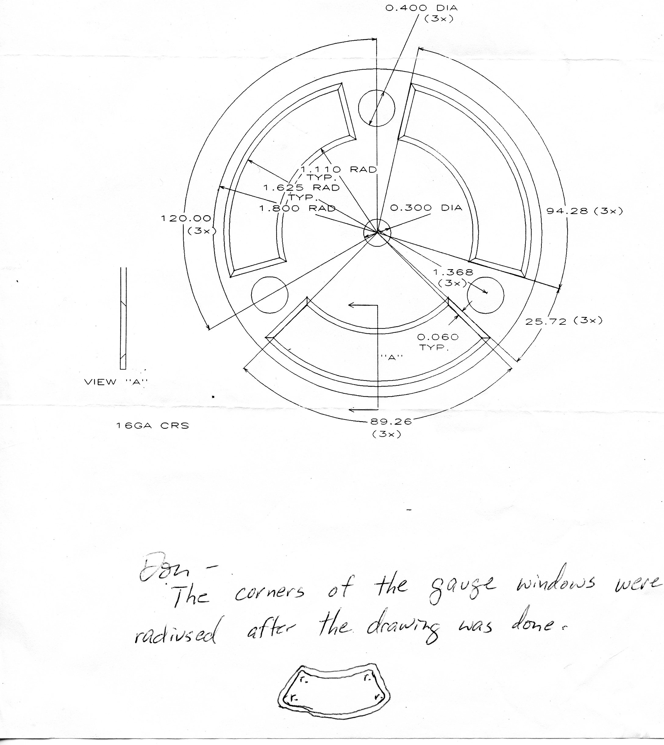 This is the original face we did, I added the radius' to the comers, the sharp 90 degree angles just did not make sense. As you can tell from the note at the bottom of the page.