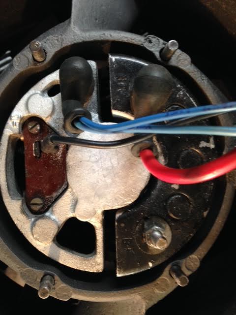 In the picture of my alt. (75 2.7) the red wire is connected to the connector marked B+,
