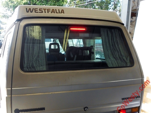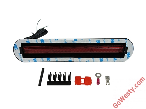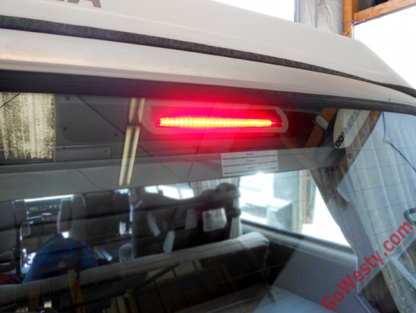This GoWesty stick-on LED is a less expensive & easier to install without any drilling, but the con is that it is taller than the Vette one & blocks more view - unless you were to mount it behind one of the headrests which are blocked anyway (or 2 - 1 behind the L & R headrests). It's easily reversible by peeling off the light & pulling the wiring