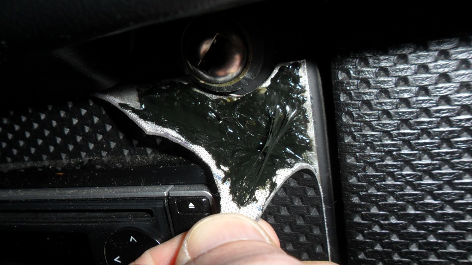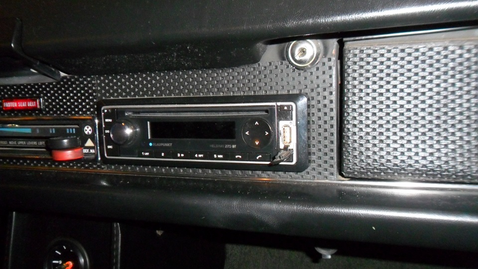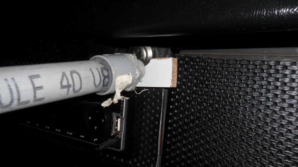 The industrial strength adhesive tape I used on my radio plate started pulling away in the heat of the summer. I needed to add some 3M adhesive. Cut a piece of PVC and scrap wood and used the seat to apply pressure. Turned out nice: