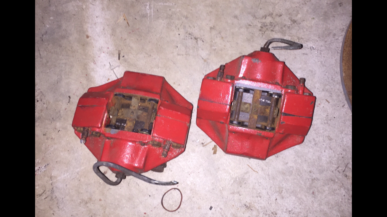 Rear vented rotors are from some other car, typically a 911, and need appropriate calipers. The "V calipers" are 914 rears with a spacer in the middle so they can fit over the vented rotors, and others have used 911 rear brakes and either no parking brake or have modified the trailing arms to make the 911-type drum parking brake work.