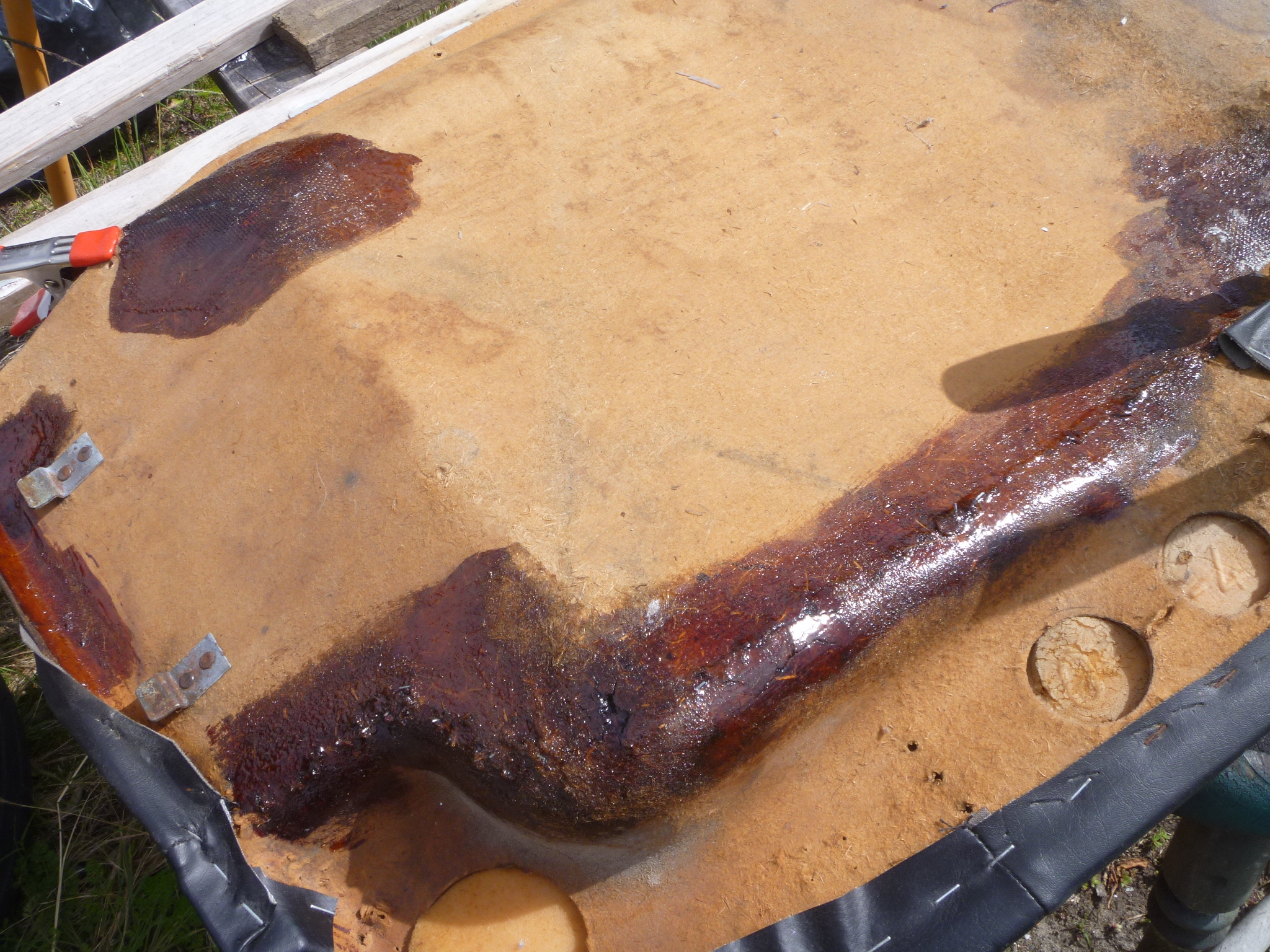 From my pic you see I gave it a resin rich coat to hold the cardboard together,let that dry and sand it back and used surfboard cloth to beef it up,really works but time spent of course.