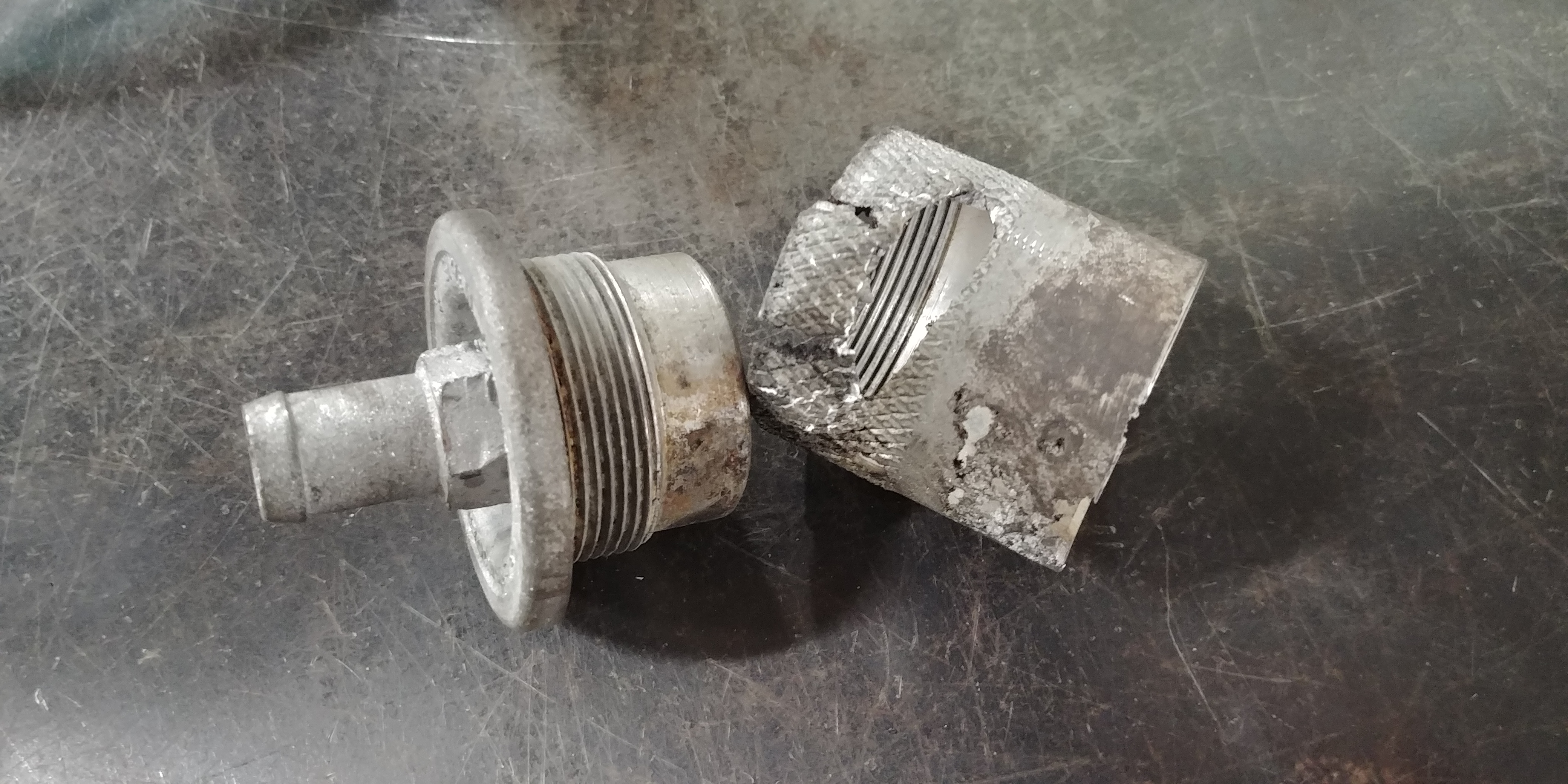 That may work the part to the right is /was bonded to the inside of the tank. May plans are to have a new part made if I can and glue it to the inside of the tank.. Or find someone whom has that fitting. At this point all options are on the table