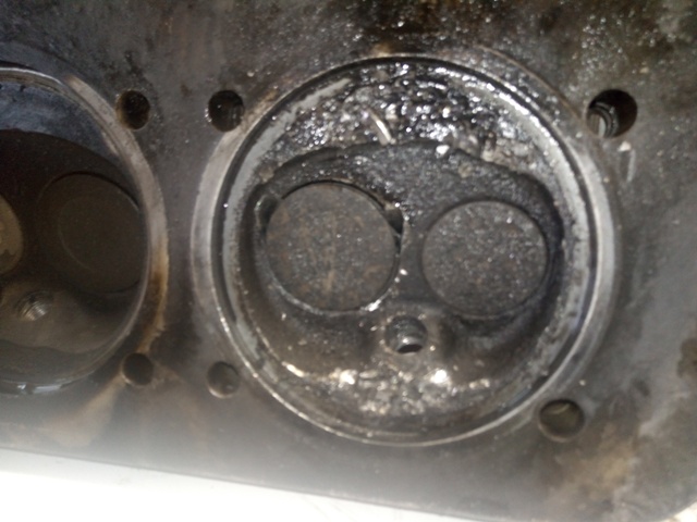 Hear you can see seat material hammered into the CC. The piston is pretty borked up too. The bores look undamaged.