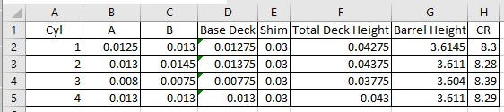I measured deck height with the single metal gasket/shims that came with the gasket kit installed only because they are already on there and I just wanted to see if I was close. Deck heights at the center range from .052" to .07" which seemed like a decent starting point but height out at the edges is only .02". Of course, I can get any number in between depending on where I measure. I just want to make sure I have the right clearance.