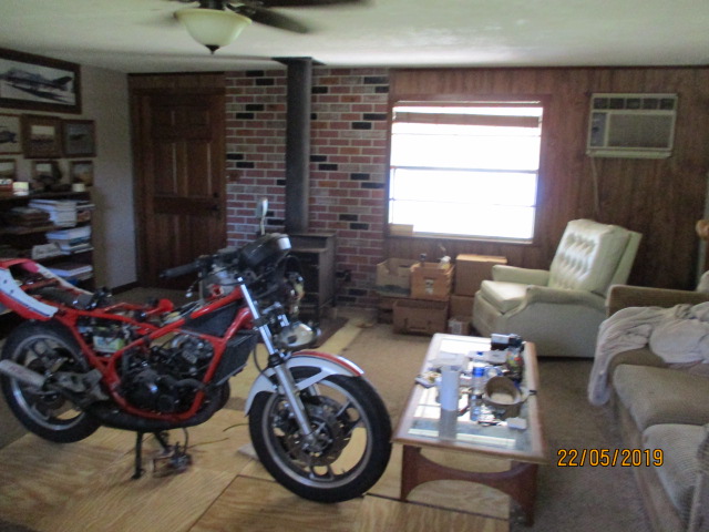 Nothing but I got some work done on my Yamaha also. Just cleaning it up after it's adventure. It's 95 and I just sweat working out in the garage. Need to put in the A/C. So the bike is inside.