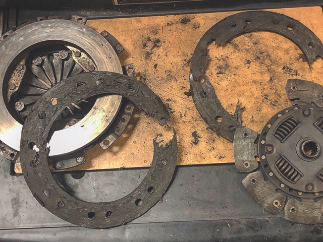 Well, tonight I pulled the tranny to assess the damage and the problem is clear -- a blown clutch. It now sits on my bench in three pieces.