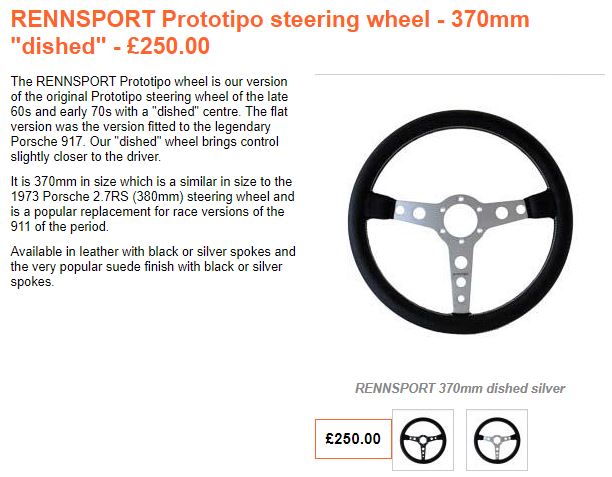 You never have enough steering wheel options. I swap mine out from time to time, stock 914 leather wrapped, Nardi 360mm, or Momo Retro 360mm. The 20mm difference is huge, 370mm might be nice.