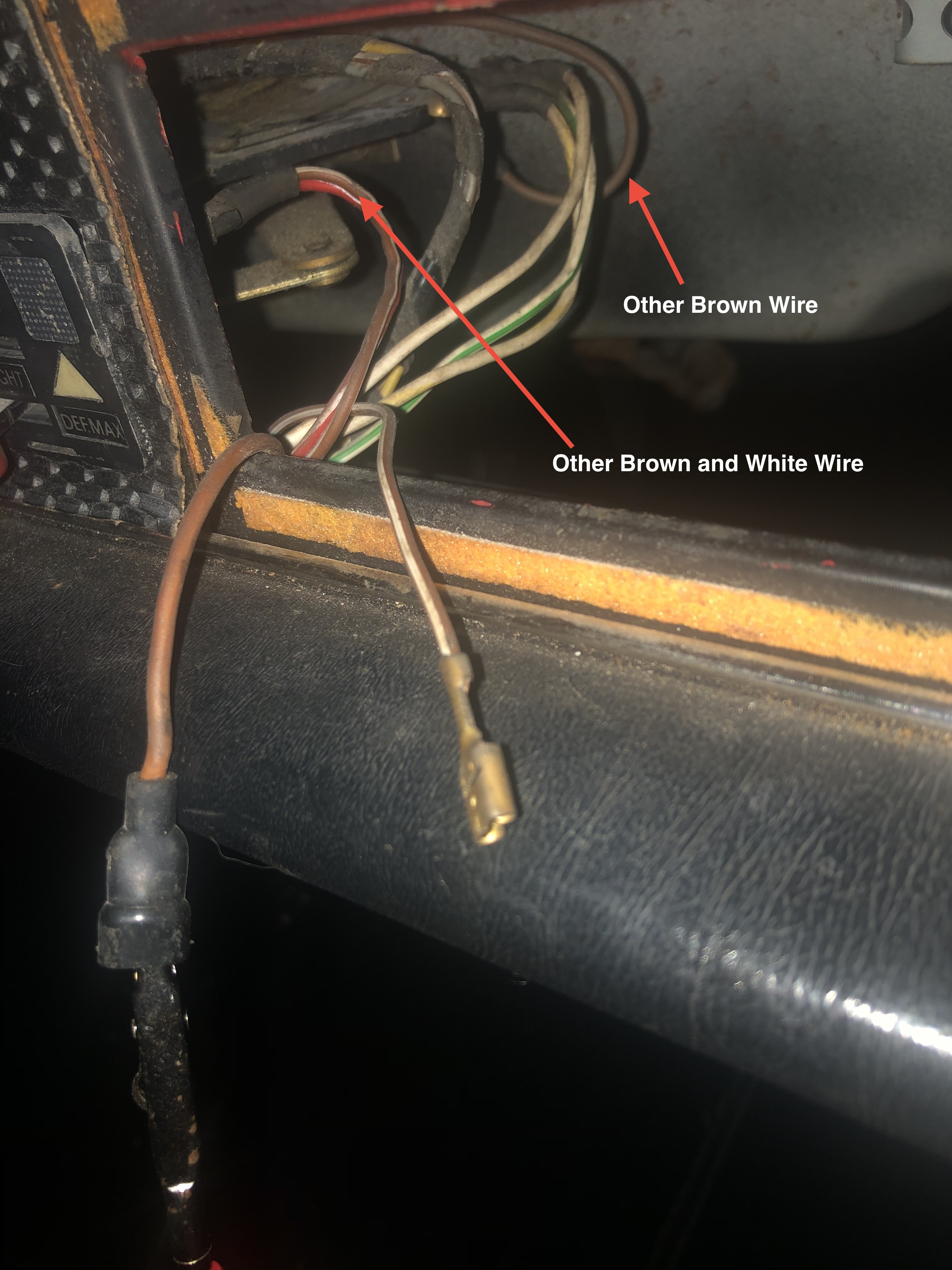 FWIW, the fresh air fan works, so it's hooked up to something. And to make matters more confusing, there are similar wires (larger gauge brown, smaller gauge brown and white) in the harness as well that ARE hooked up to the fresh air controls. You can somewhat see them in the picture below.