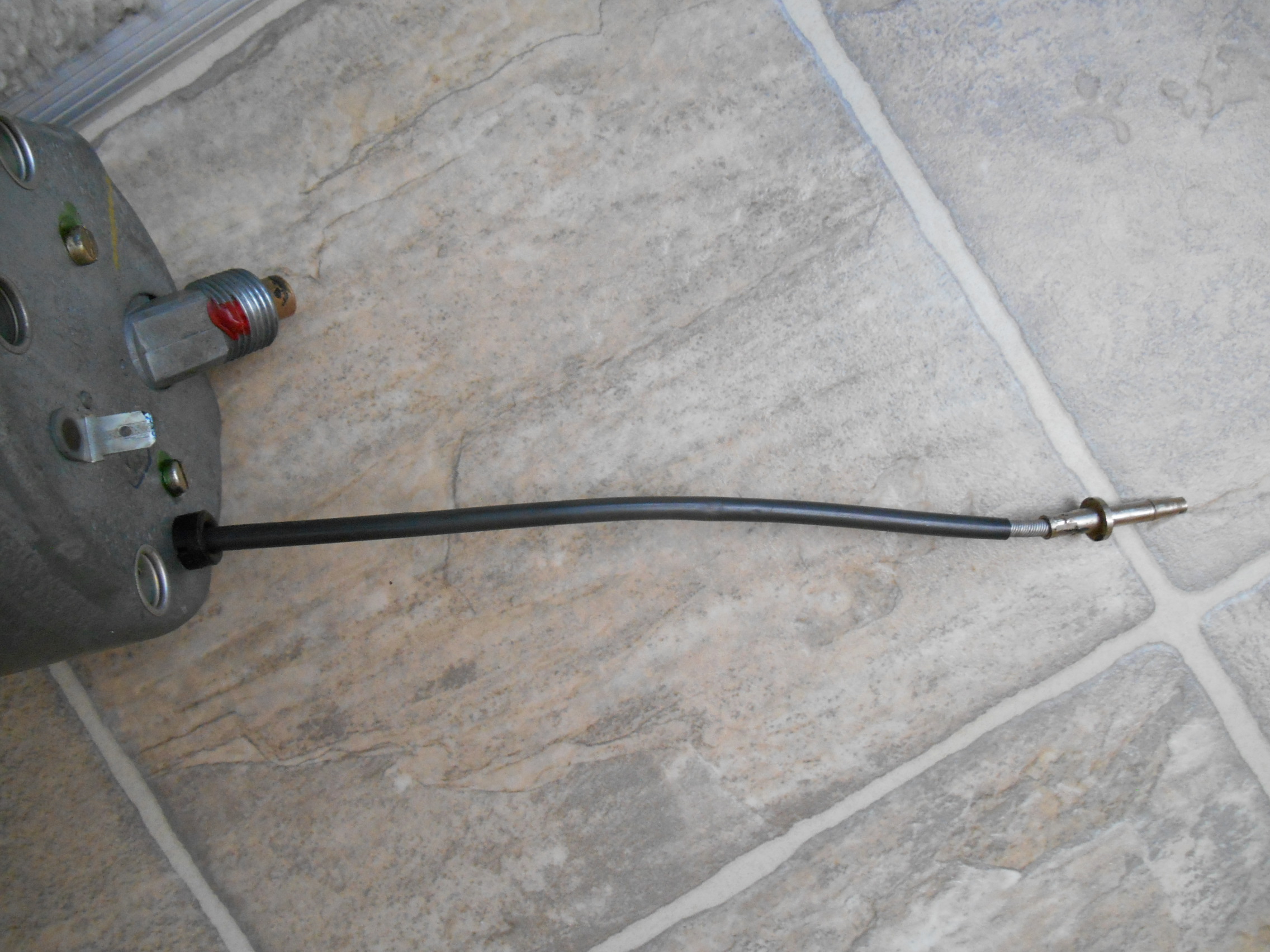 That is the trip meter re-set cable for resetting the trip meter to zero. It goes into a hole in the bottom of the dashboard. It’s missing the re-set knob, washer and retaining nut.
