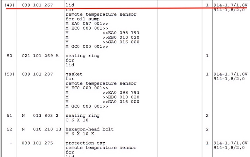 only 914/2.0L engines came with the sump lid plate, temp sensor wire supports and temp sensor wire in place on the assembled engine.