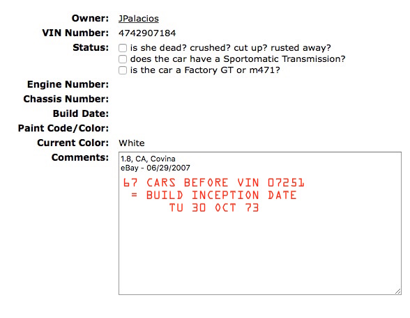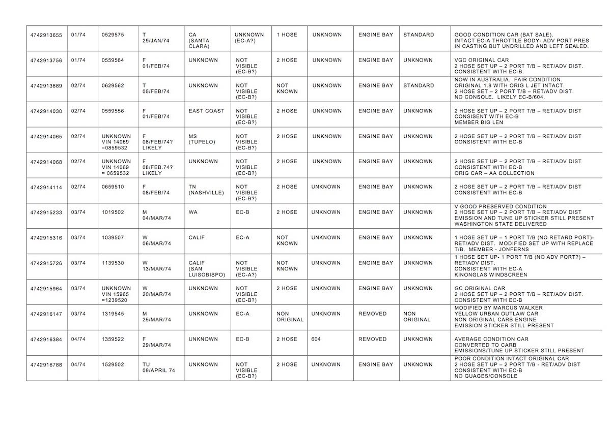 if the hypothesis is correct (and the only difference between 75/76 2.0 L engines is pollution equipment/specification) there will be two numbers for engine paint stamps for each of the the years.