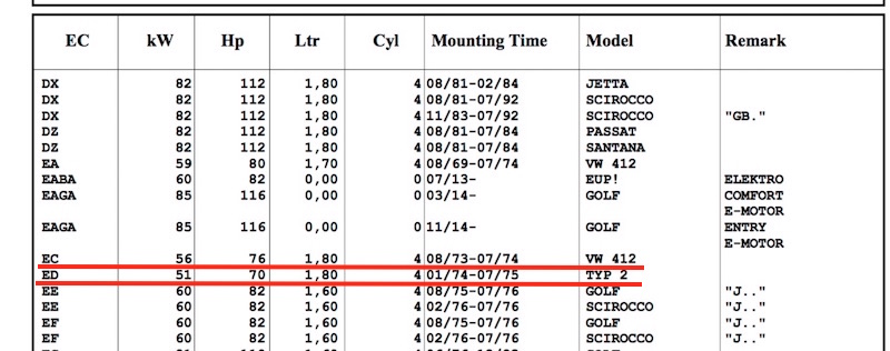 the exceptions to the above will be engines stamped with EA370 or possibly some other identifying stamp. those stamps appear to identify those engines with the early stage of an engine program connected with cars 73 and beyond. ie the discontinuation of the porsche 6 cylinder engine and the revamping of the engine range towards the 2.0 L and 1.8 L cars. EA370 is the project development # covering that program?