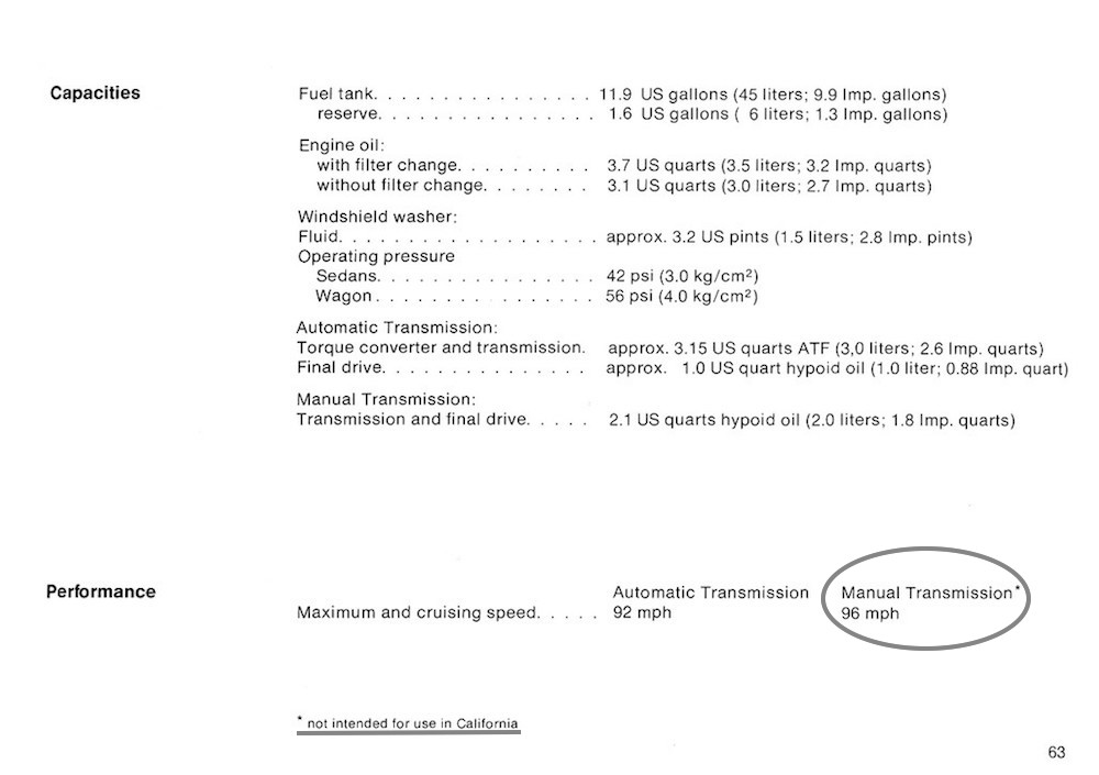 a number for 49 state cars (no gauges).