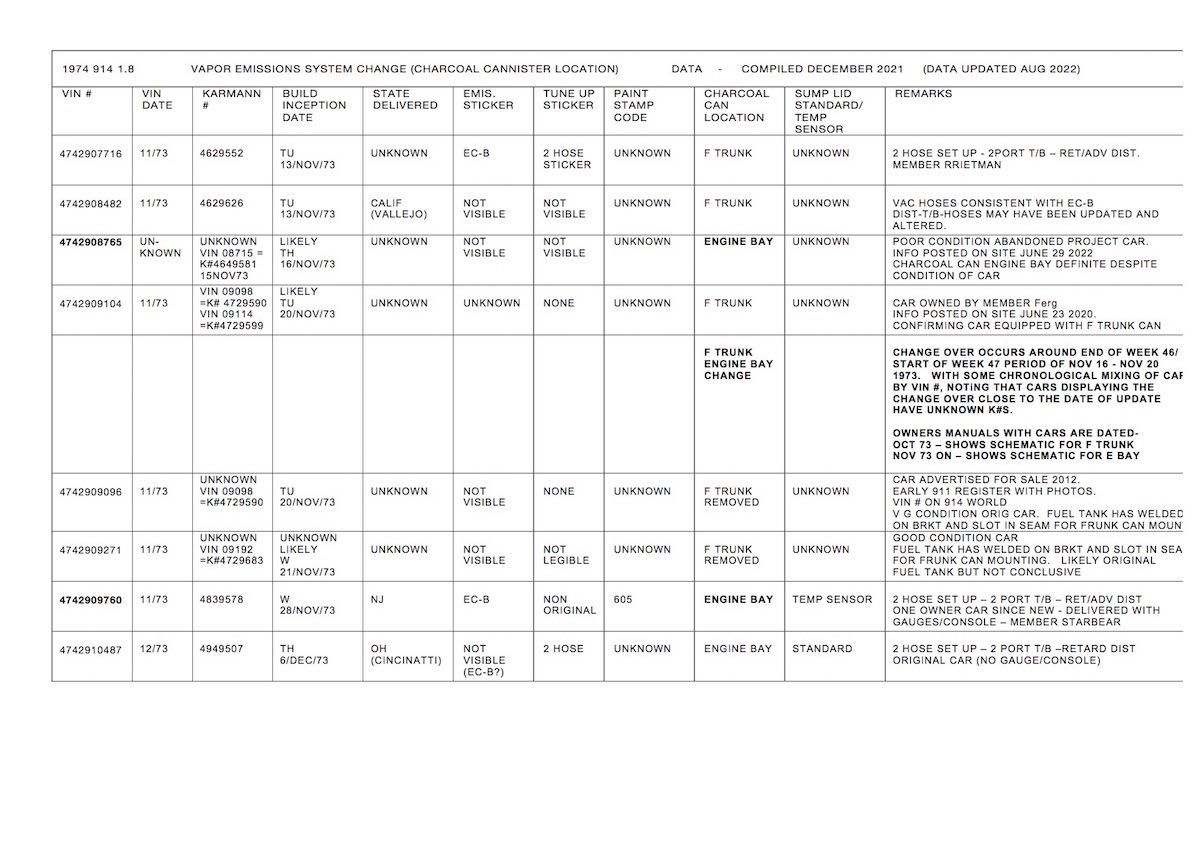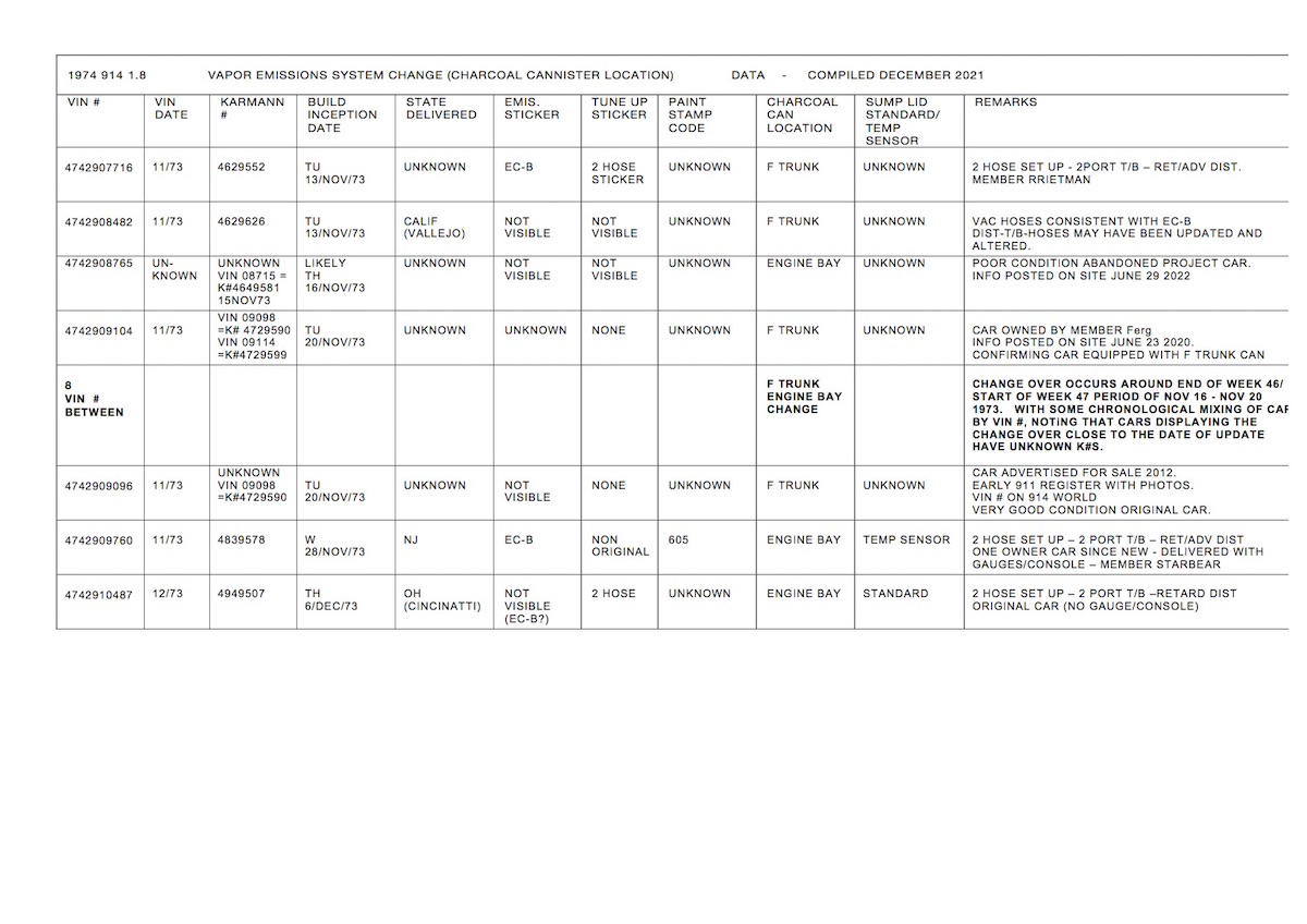 73/74 2.0 L cars will have one number for 49 states and california, no difference in emissions spec for those two years?
