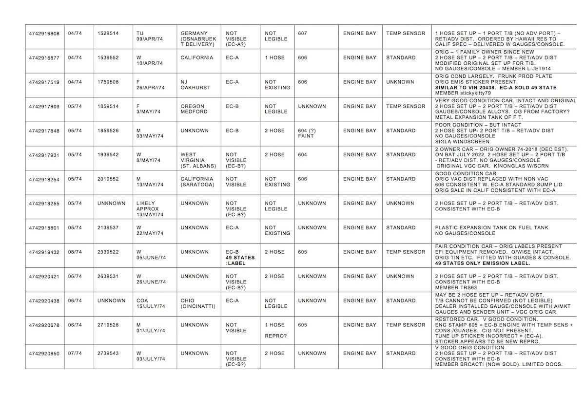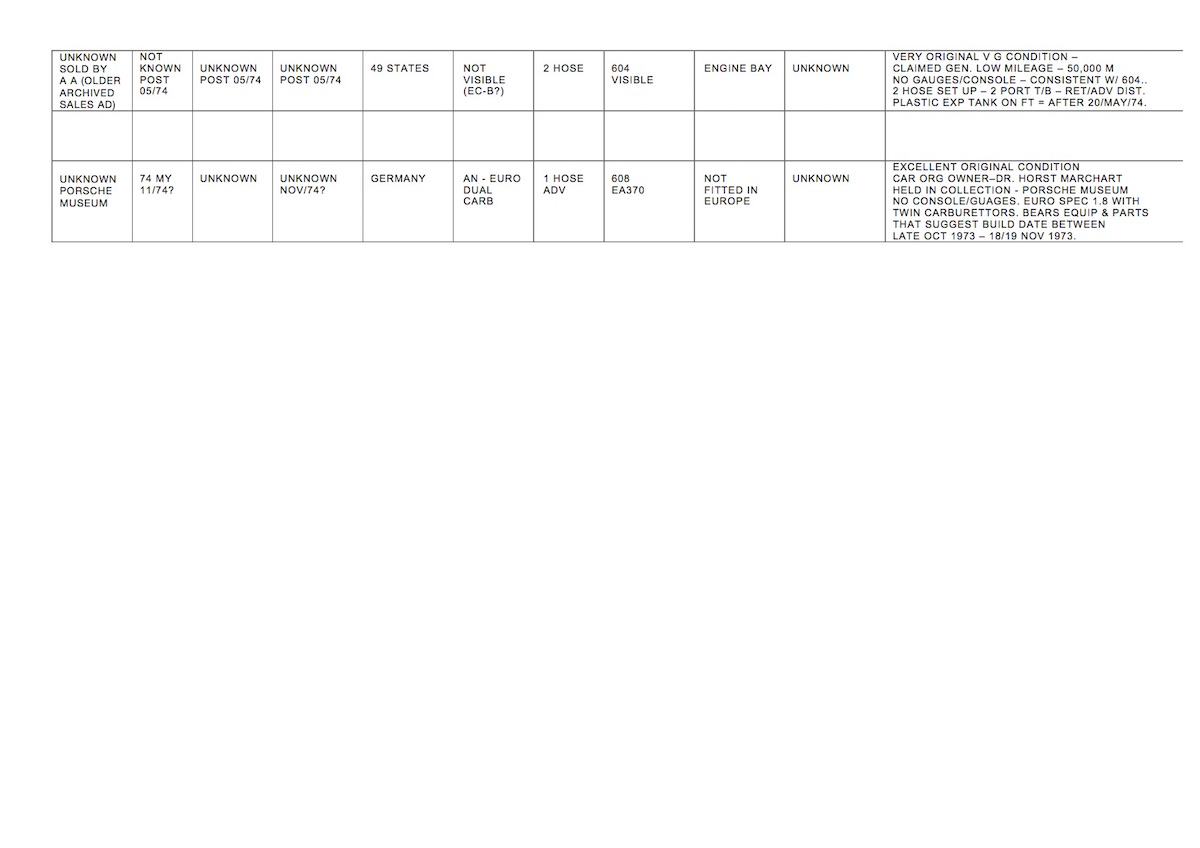 only one car had sufficient documentation to determine that it was special ordered from the factory with an "app group" option (gauge/console). the car was tourist delivered to the original owner at the karmann factory in germany.