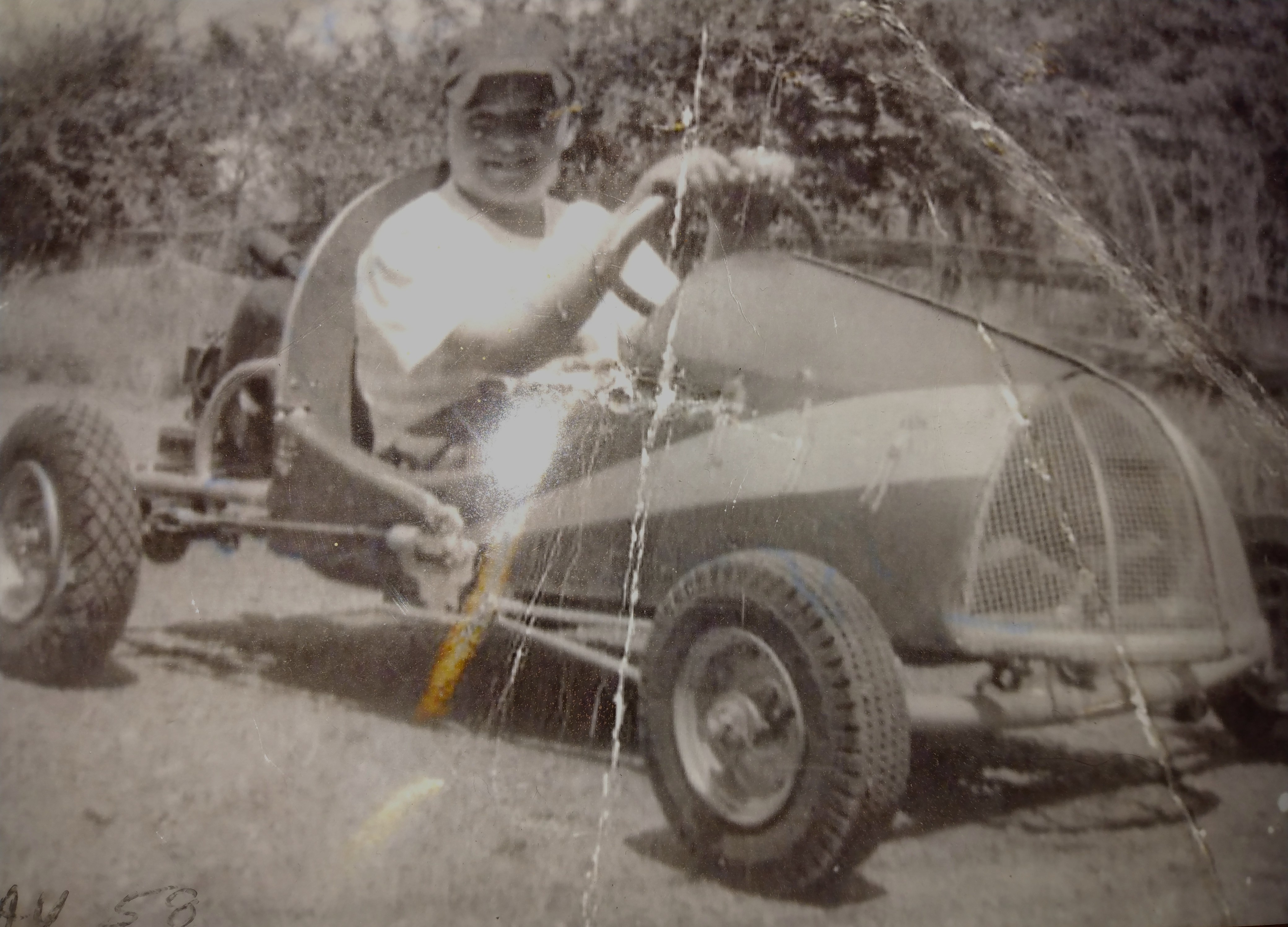 1950 Chevy 2dr coupe. Sold it in 1956 and bought a 55 Chevy Belaire 2dr 6cyl. Two tone white/light blue. I was 8 at the time. My dad built this go-kart when I was 11.