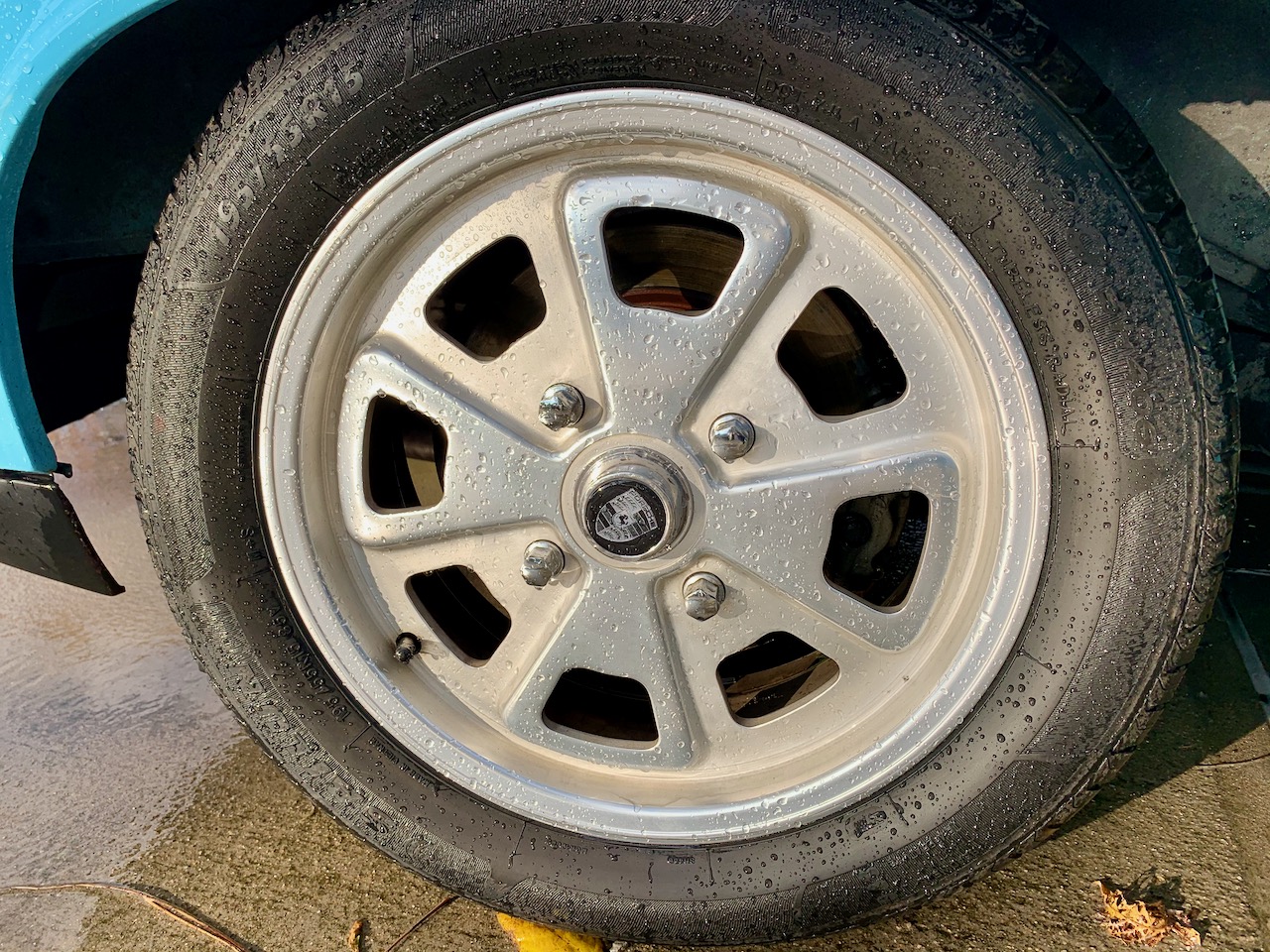 Bought the car recently with tiny, very old yokohamas 100es tread. 195/50/15". Other than the tire size, they look right on the car. Clean, simple sidewall without a bunch of patterns/ graphics. Not too modern, a little more old school. No longer made.