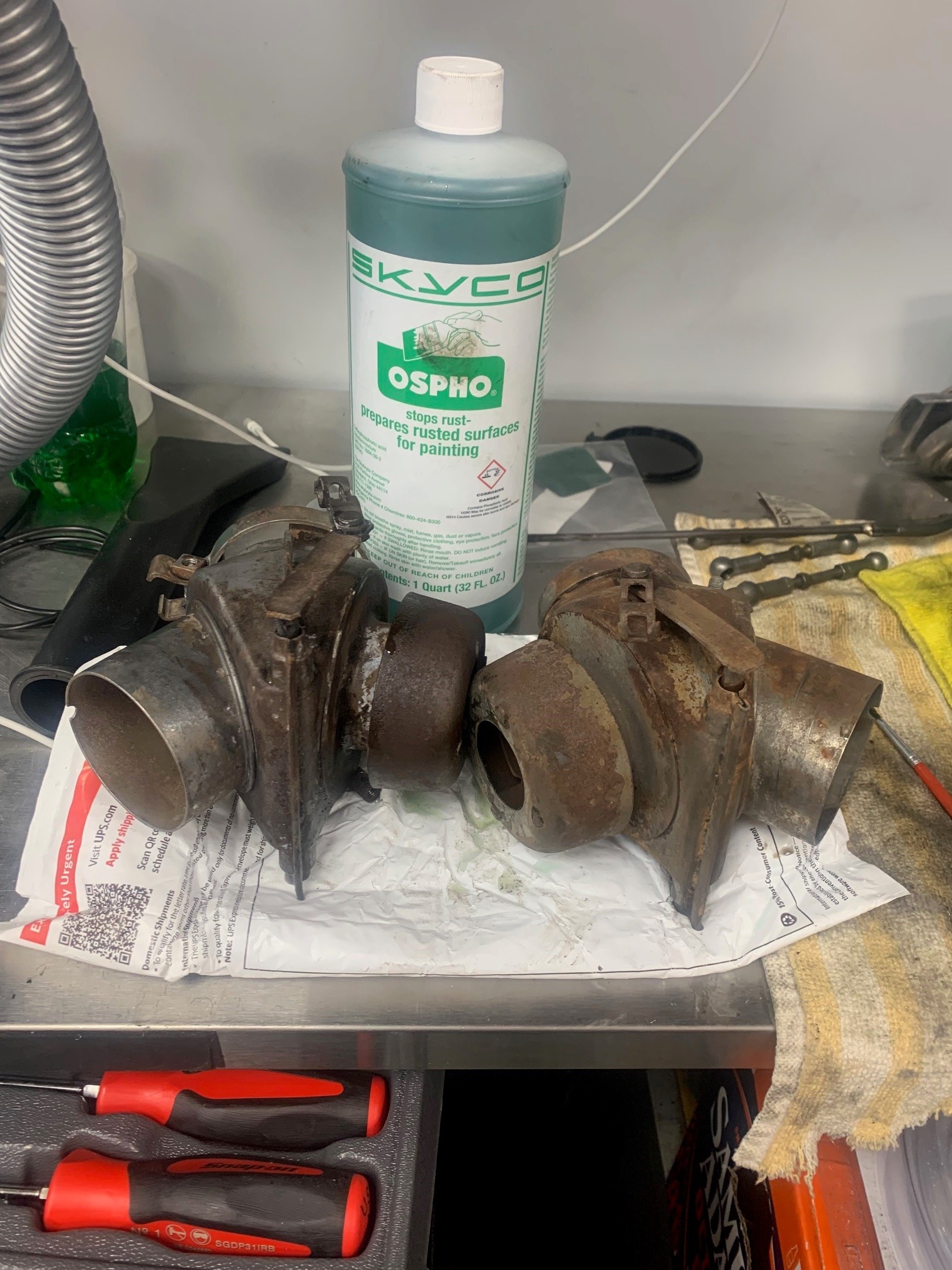 Heat exchangers have no holes in the pipes that I could find, the surrounding tin has been treated with anti-rust leakage - perhaps this was the plan in Stuttgart?
