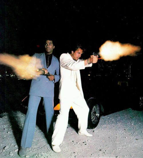 Miami Vice trivia... The Ferrari Daytona Coupe in the back ground is actually a Corvette made to look like a Ferrari. The guy that owned the shop that did these conversions was said to have been arrested and sent to jail. For... ahhh....something.