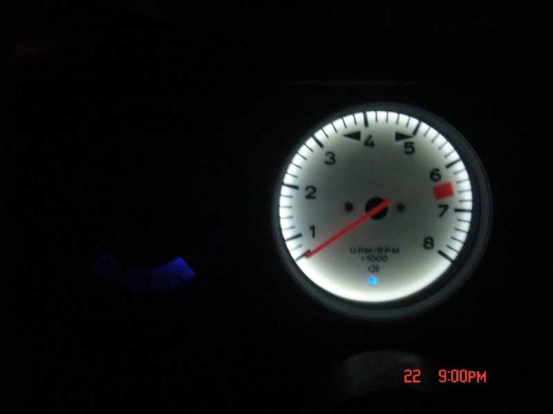 Click to view attachmentWell, I like my white gauges, especially after I modified the tach (the others will follow) with Mark's great idea of adding LED strips to the inside of the gauge tub. Just check out the difference between a stock gauge with blue led bulbs and the modified tach with the led strip. Incredible!