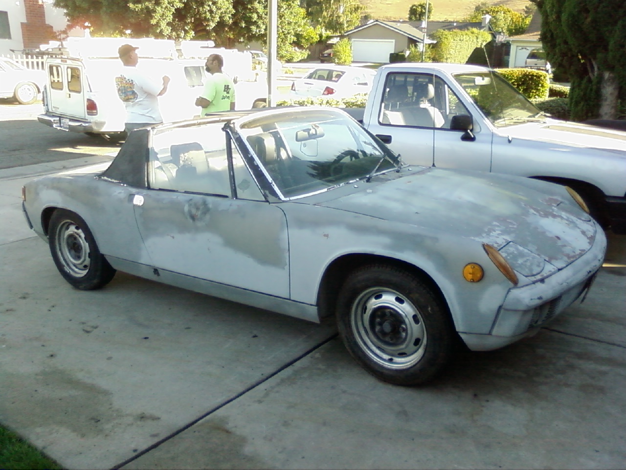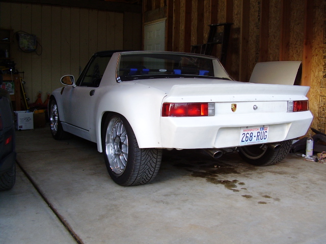 Hey all, new to the site. Sooo many nice cars and good people on here. This is my 73 914 1.7 that had a 2.0 in it when I bought it 15 years ago. Since has undergone 350 SBC V8 conversion about 3 years ago using Renegade kit. RDR front bodywork, Sheridan rear quarters and fin, fiberglass hood, Chevy CK headlights, MX5 mirrors(cheap alternative to factory aeros) Momo seat/wheel/shift knob, 5 pt belts, Koni/Eibach/ground control, Carrera front brakes, 8.5 & 10X18's with Conti's. 2,350lbs with full tank. Fun car to build. Wish I could afford a proper 3.6 conversion but hey, I needed cheap power. And maybe one of these days I'll finally paint it. See ya, Paul.