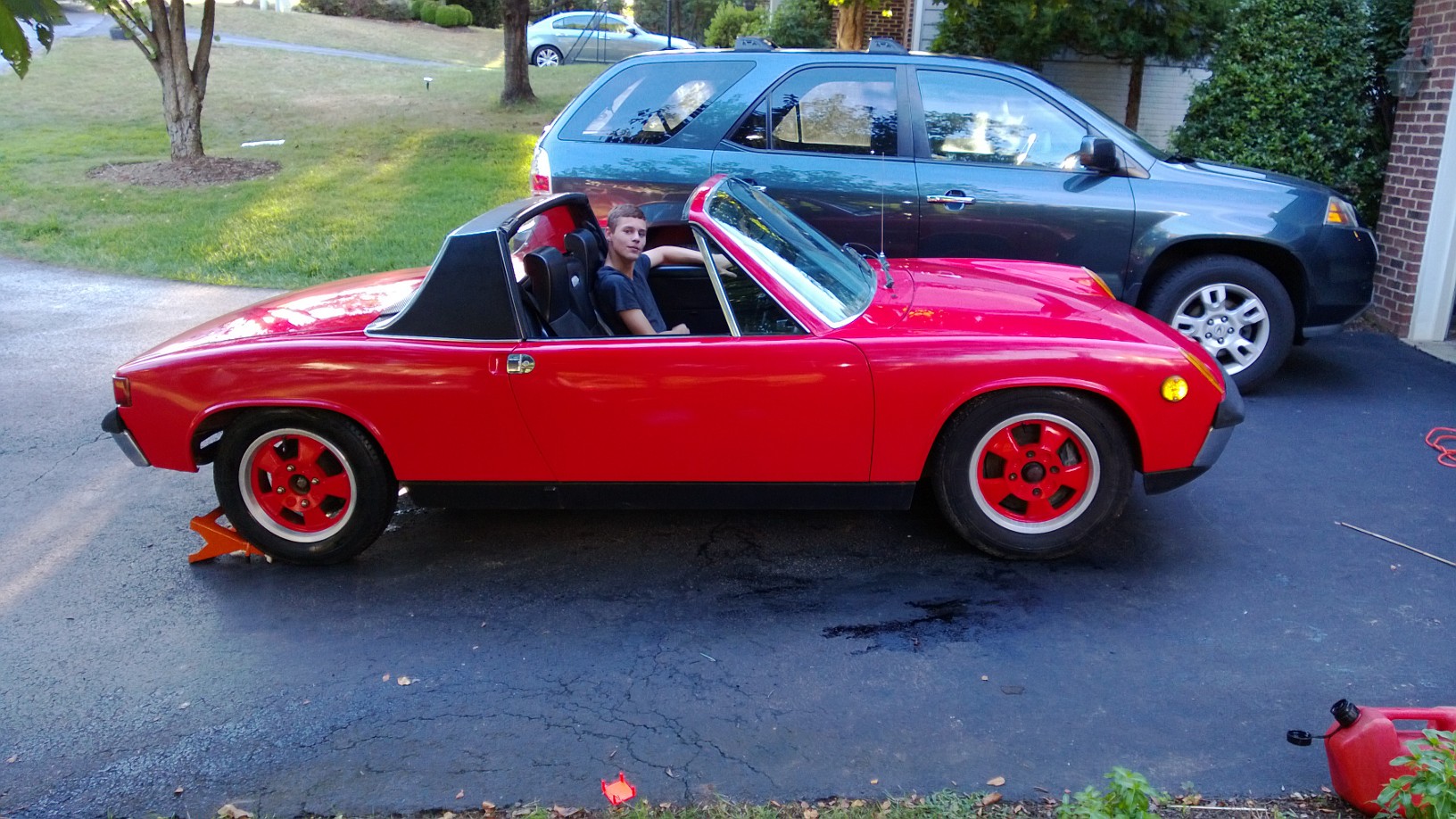 My 914 (and teenage son) shortly after I picked it up. Jackstand there as I had to remove the brakes which had frozen up on all four wheels.