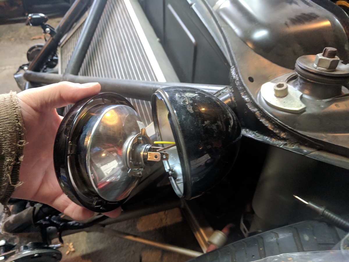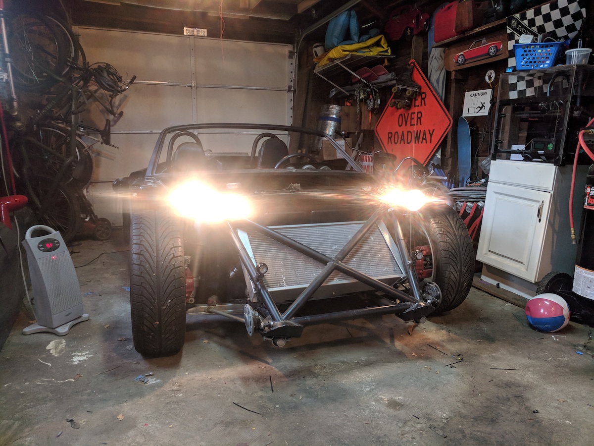 could be cited for no side markers, but my 914 is rarely driven at night anymore. As for headlights in the front bumper, there's a minimum headlight height in CA and many lowered cars are probably in violation of the same law that would prevent one from mounting headlights in the front bumper. Would be curious to know if WA's laws are the same, and if a magnetic (or?) setup could be fabbed up to work at night and/or satisfy a fix-it ticket. They might have to be mounted on the cowl of Project Anklebiter...