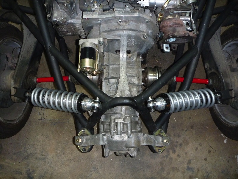 I did a loose mockup this morning, everything is just held on with zipties but you can get a pretty good idea of how this is supposed to work. I ran it through its entire range of movement and it looks like I am free of interference and binding so the next step is building mounts for everything then connecting this assembly to the trailing arm.