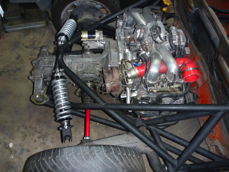 Click to view attachmentAnd a shot from the top, I am going to weld in threaded mounting holes into the chassis but everything is just hose clamped together until I can pick some up.