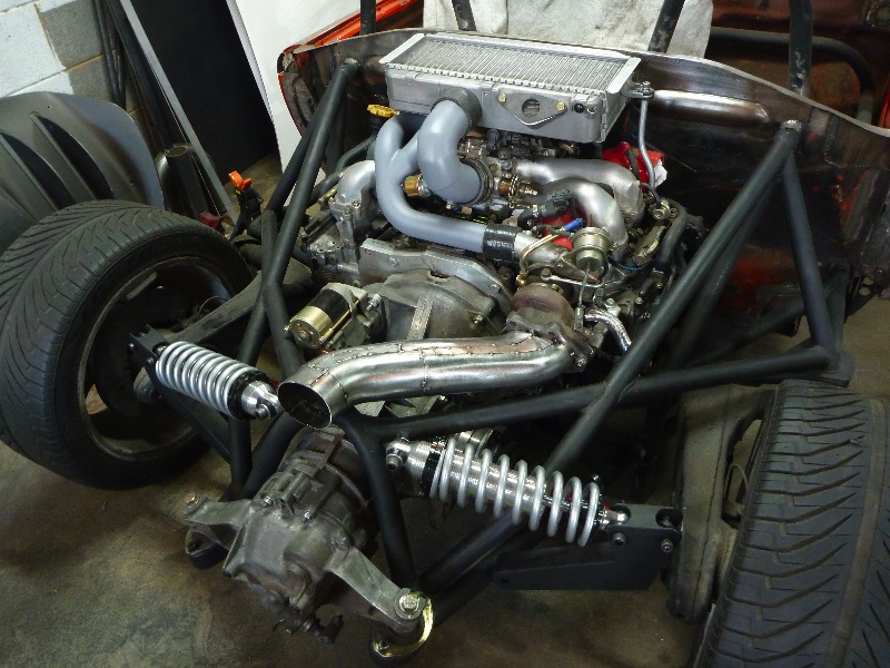 . I will run this portion of the exhaust when I test the bare chassis, then eventually add on a full (but still muffler-less) exhaust once the body is on.