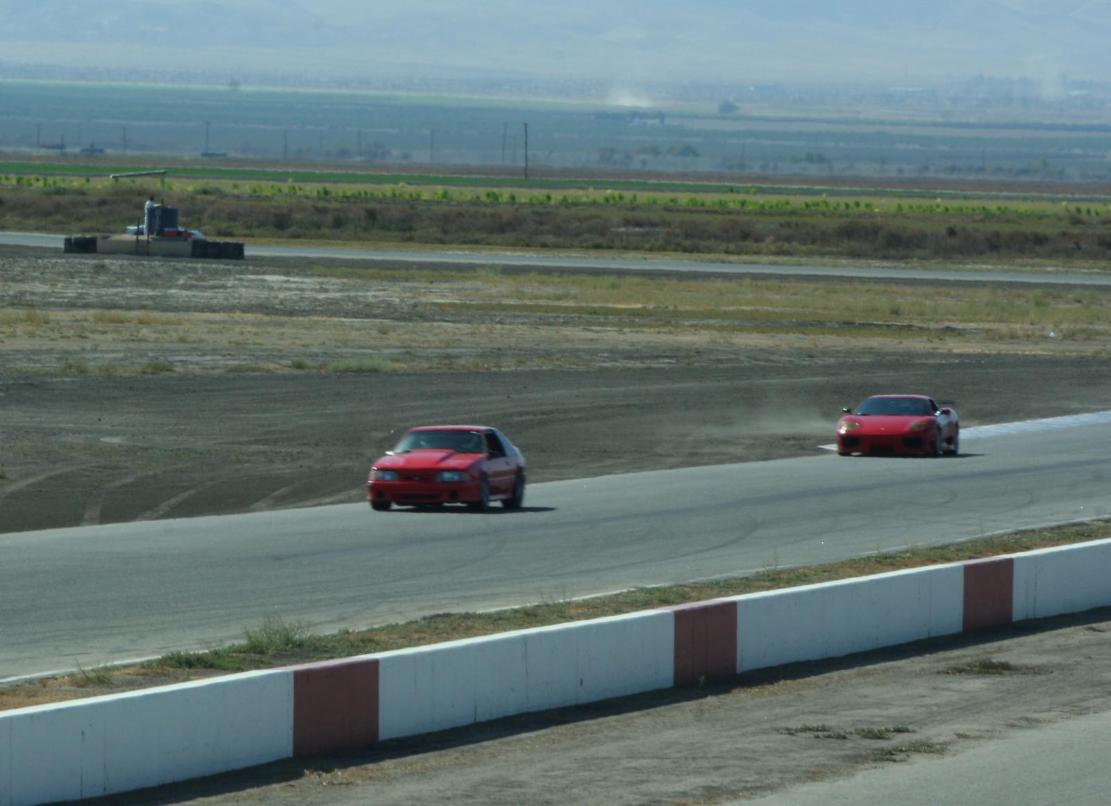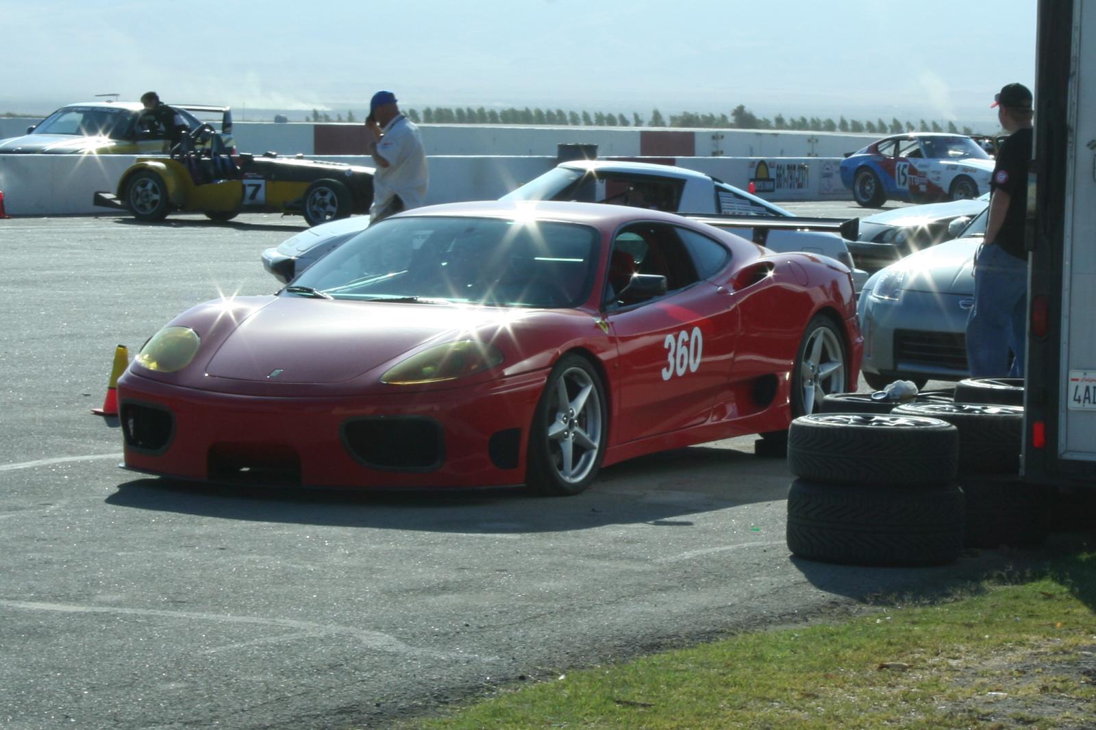 Not two laps after the Porsche incident, I looked over towards the exit of the esses just in time to see him lose the back end. I knew that if he didn't recover before he hit the dirt that he wasn't going to get it stopped in time to miss the wall. He spun once in the dirt and was headed strait for the wall where myself and a track official were standing. We both ran towards the infield, all the while watching the car to see which direction it was heading. Luckily the wall did it's job, but he busted the concrete in the process. It was a pretty hard hit. I'd say in the 50 MPH range once he impacted. He was shaken but okay. The dude gets out and he looked REALLY young. Turns out, daddy is a 430 Cup racer, and he pieced together a seriously built 360 for his 18 year old son! Needless to say, I was jealous!
