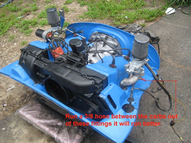 Easy enough--how about for the vacum advance. Should I have placed a "t" between both carbs and ran it to the distributor. Thats how I did it and to be honest, other than the poping it runs pretty smooth.