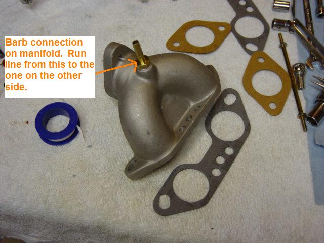 Here is a pic I took while doing the prep for my installation. Note the big barb fitting on the manifold. There should be one of these on each manifold. A hose simply runs between the two barb fittings. According to what I've read, this balances the carbs and helps in the lower rpm range.