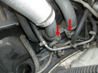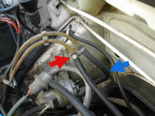 | Disconnect the heater hoses from the flapper boxes. If this picture is still blurry, email markd@mac.com |