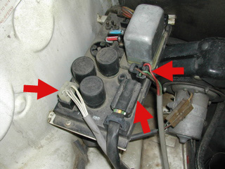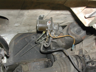 | Disconnect the starter. This car has the questionable secondary relay "upgrade". For cars without this you need to remove the two ring connections (13 mm wrench) and the single spade connector. If your car has the questionable "upgrade" make notes as to where the wires go.