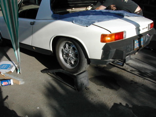 | Everything is done inside the engine bay. Raise the car onto ramps or stands. I use these ramps because I've found that they are the perfect height to pull the engine. |
