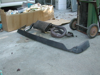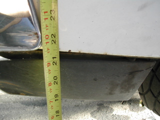 | My ramps raise the back end of the car 21.5 inches off the ground. Remove the rear valence to gain more clearance. It's held on with two bolts (8 mm wrench) in the fender wells and four(?) acccessed just underneath the bumper along the back. |