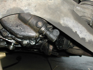 | Remove the speedometer cable connection from the angle drive by unscrewing it. Adjustable jaw pliers or a large cresent wrench may be necessary. |