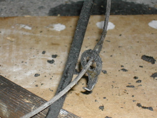 | Disconnect the clutch by clamping pliers or locking pliers onto the cable end (not the actual cable) and removing the nut and locking nut (11 mm wrench). Make sure you have two regular nuts. Nylocks will overheat and loose their "locking" power. Best to just use an additional lock nut. Ratcheting box end wrenches come in really handy here. |